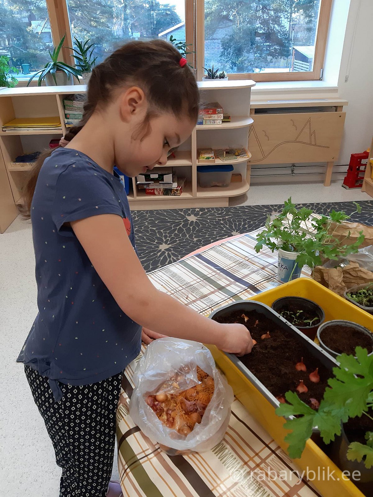 Rabarüblikud on usinad aiapidajad. Juba esimeste kevadiste päiksekiirtega ilmuvad ei tea kust aknalaudadele istutuskastid. Mulla ja seemned panevad sinna lapsed koos õpetajatega. Hoolitsemine, pikeerimine ja ümberistutamine on ka laste töö. Soojemate ilmade saabudes kolivad mõned taimed õue istutuskastidesse, mõned jäävad aknalaudadele ja mõned kingitakse peredesse.