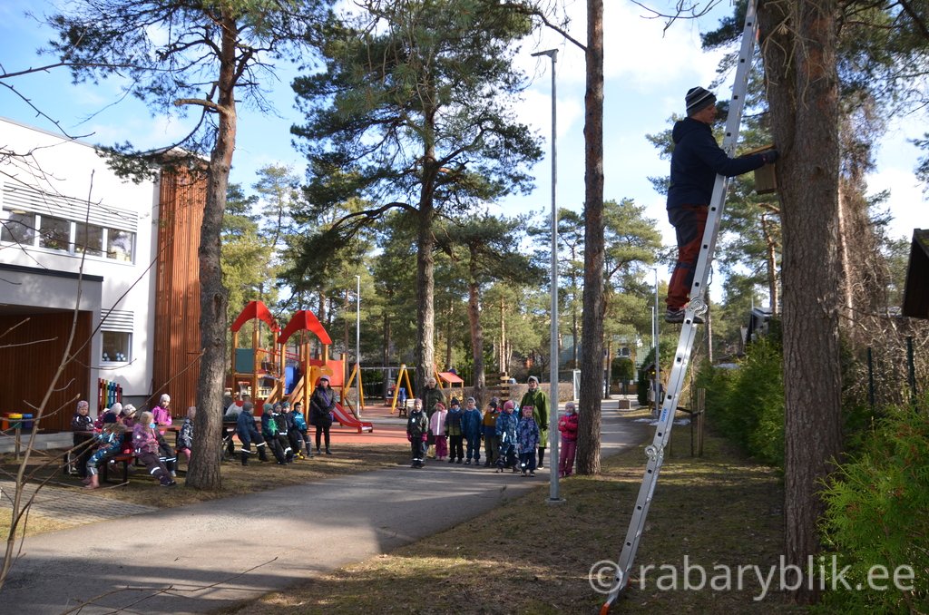 Neljapäeval, 26. aprillil tuli Taaveti isa neljandat aastat meile appi, et pesakastid lindude jaoks puhastada. Lasteaia seitsmest pesakastist oli neli elaniku leidnud. Ühes kastis oli lausa kaks pesa! Nii, et viis linnukest olid oma järetulijad meie lasteaeda usaldanud :)